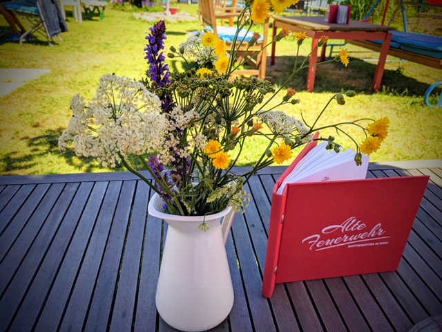 Unsere "Alte Feuerwehr" mit sonnigem Kaffeegarten und kleinem Restaurantcafé verwöhnt Sie täglich mit wechselnden Überraschungsgerichten, Hausgebackenem aus unserer Backstube, leckeren Suppen, herzhafter Quiche und regionalen Spezialitäten.